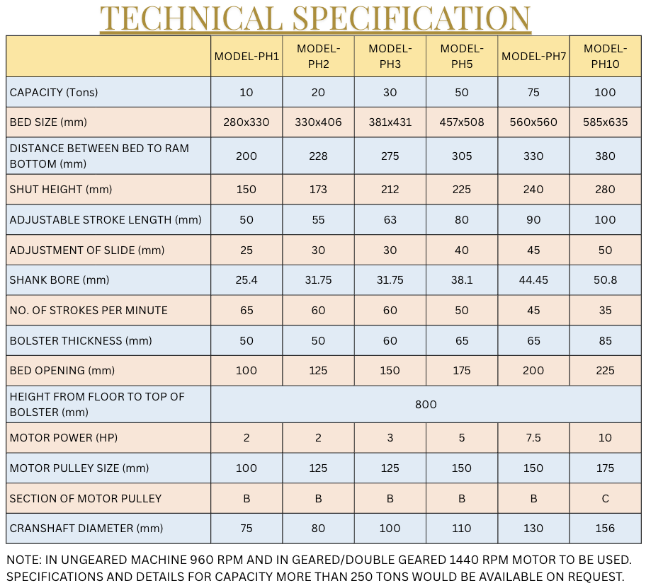 เครื่องอัดไฮดรอลิกแบบ Hชนิดของเครื่อง