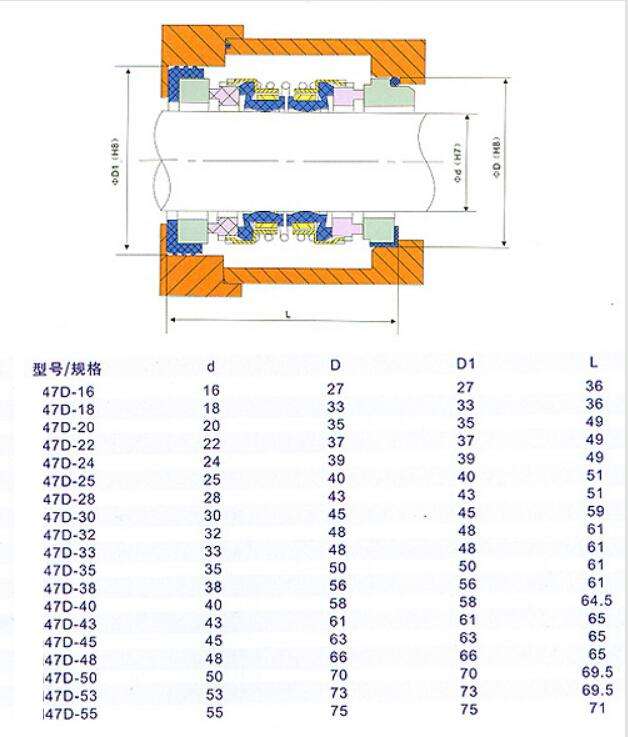 ประเภทซีลทางกล47D ปิดผนึกสองหน้า
