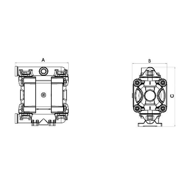 ปั๊มไดอะแฟรมคู่ที่ทำงานด้วยอากาศ P20 Meclube พร้อมปะเก็นโพรพิลีนและอุปกรณ์ขนส่งสารเคมีเทฟลอน