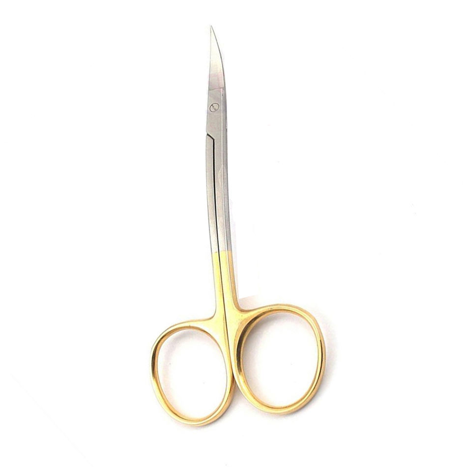กรรไกรใบมีดโค้งสีเหลืองทำจากสเตนเลสสตีลกรรไกรสำหรับจัดรูปแบบตามสั่ง