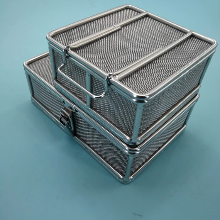 ตะกร้าตาข่ายฆ่าเชื้อเครื่องมือสเตนเลส304ทางการแพทย์ถาดฆ่าเชื้อสำหรับใช้ในโรงพยาบาล