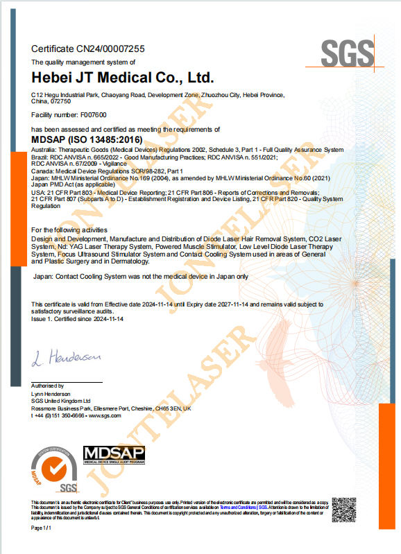 เครื่องกำจัดขนด้วยเลเซอร์ไดโอด 4 ความยาวคลื่น 755nm 1064nm 940nm 808nm ยี่ห้อ Medical CE Jontelaser เทคโนโลยี FAC กำลังไฟ 1200W แบบ Semiconductor 2