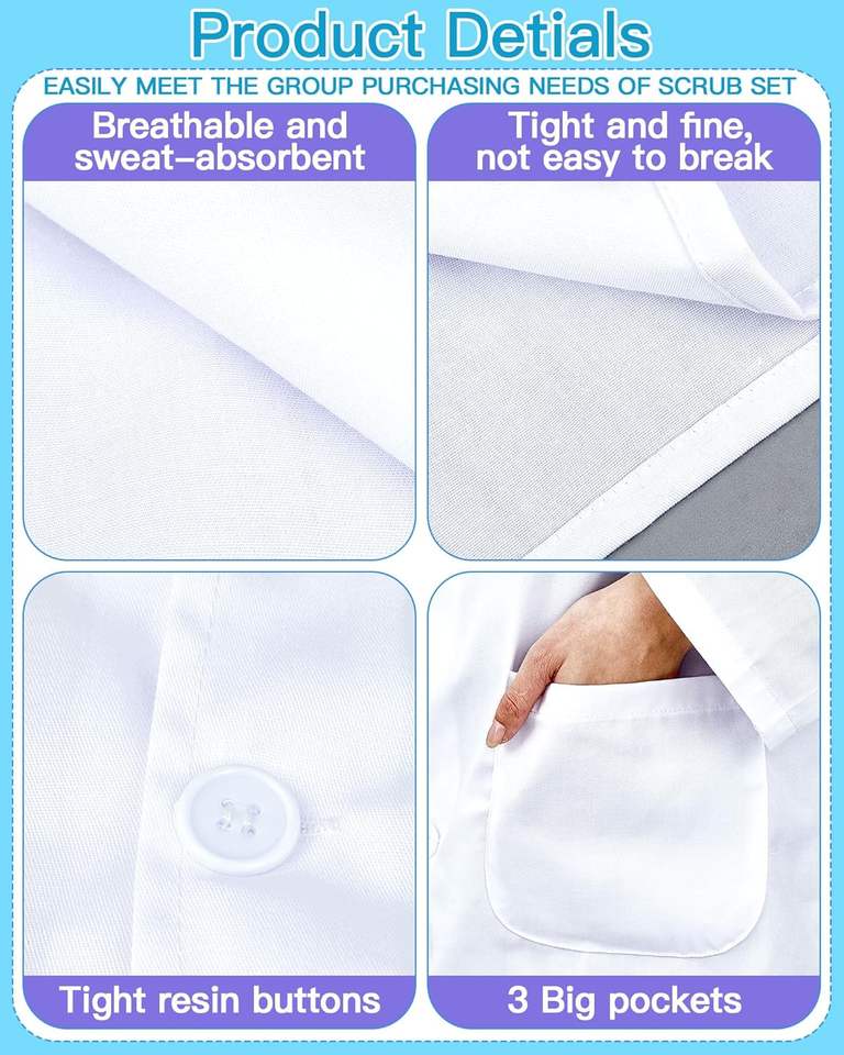 เสื้อโค้ทการทางการแพทย์สีขาวยูนิเซ็กส์เสื้อโค้ทสำหรับใส่ในห้องแล็บใส่ในโรงพยาบาลทนทานเสื้อโค้ทผ้าคอตตอนโพลีแขนยาว