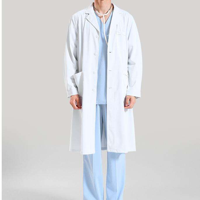 เสื้อโค้ทการทางการแพทย์สีขาวสำหรับทุกเพศเสื้อโค้ทสำหรับใส่ในห้องแล็บเนื้อผ้าโพลีแขนยาวทนทานเสื้อโค้ทสำหรับใส่ในโรงพยาบาล