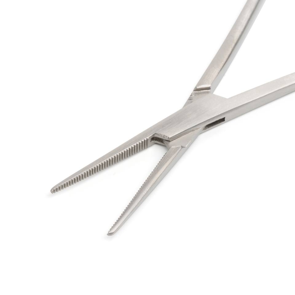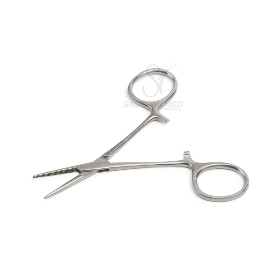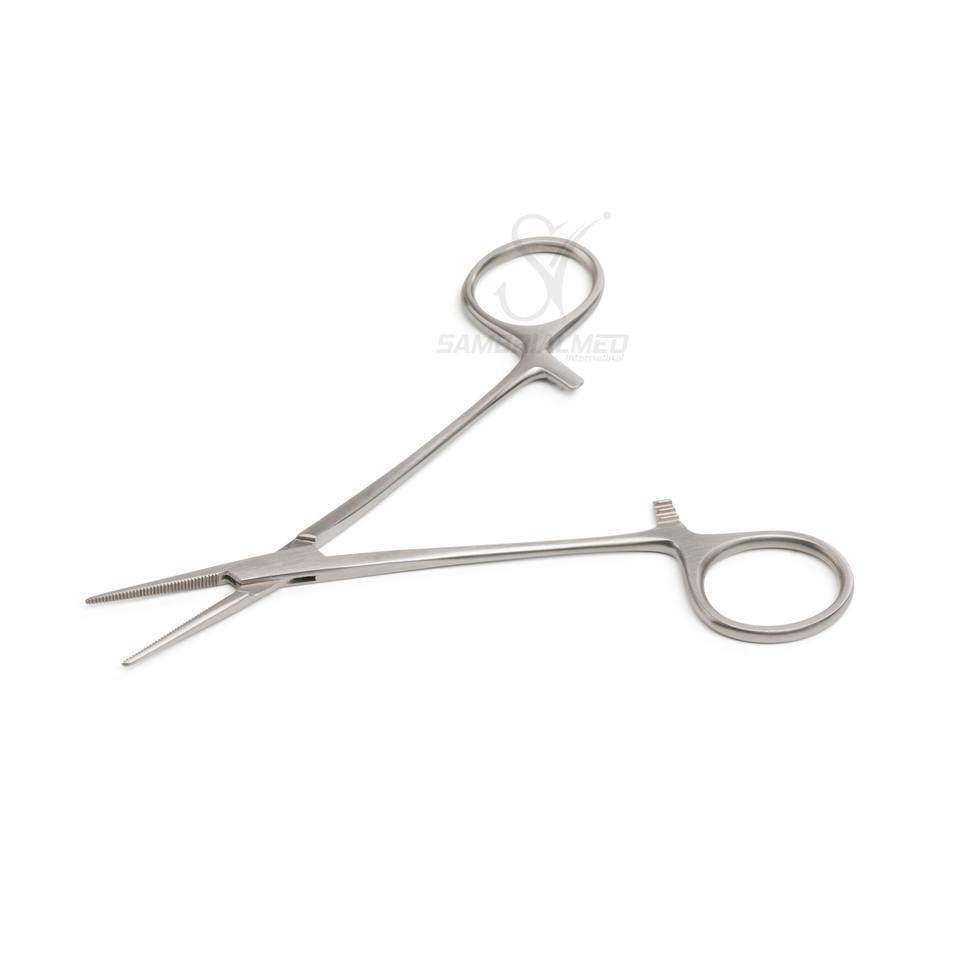 คีมเย็บหลอดเลือดแบบ Halsted-Mosquito ทำจากเหล็กกล้าไร้สนิมเกรดทางการแพทย์ของเยอรมัน ขนาด 12.5 ซม. / 4.9 นิ้ว ปลายแหลมตรง ใช้ด้วยมือทั่วไป