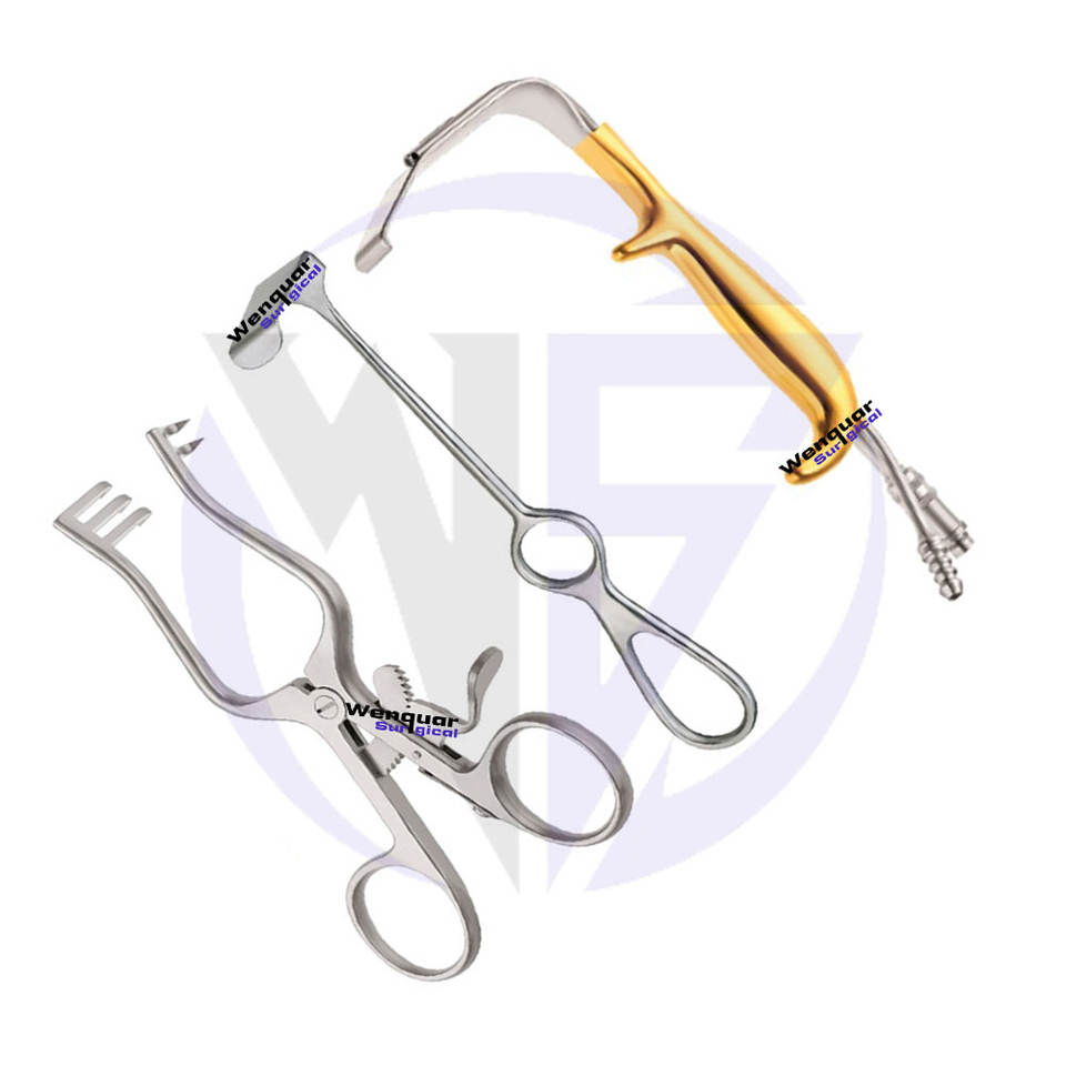 เครื่องมือทางการแพทย์เครื่องมือดึงกลับสำหรับการผ่าตัดชุดทอง3ชิ้นเครื่องมือแบบแมนนวลทำจากสเตนเลส