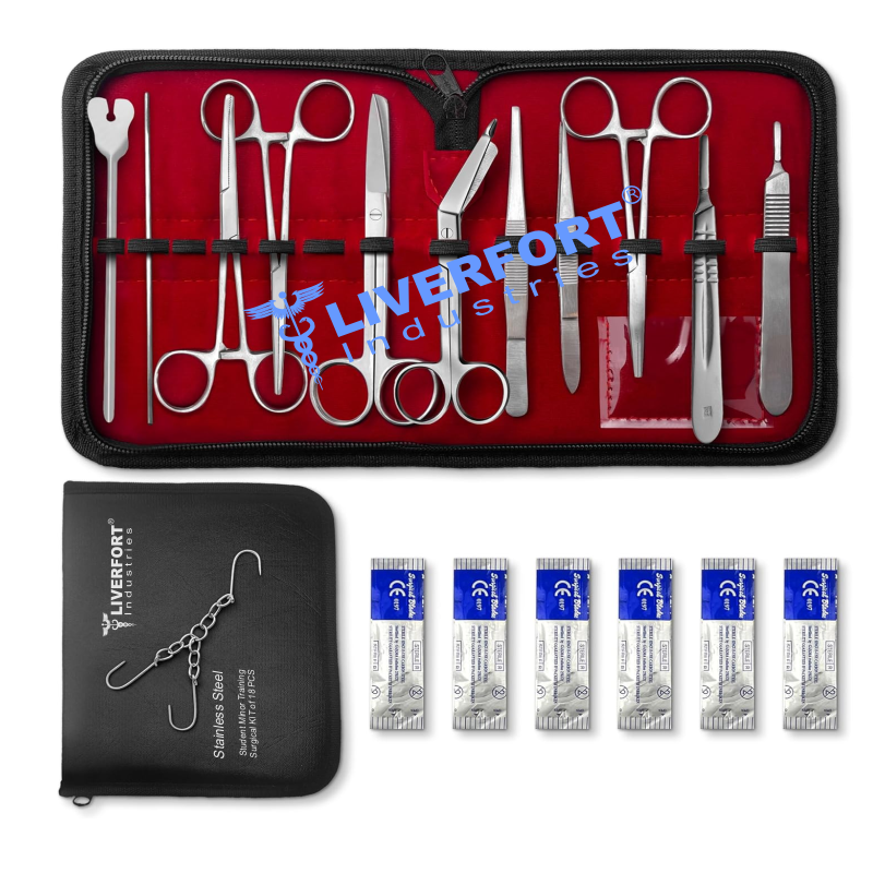เครื่องมือทางการแพทย์ชุดผ่าตัดสำหรับนักเรียนฝึกหัดเล็กๆชุดอุปกรณ์ผ่าตัด18ชิ้นมีดผ่าตัดผ้าพันแผลคีม