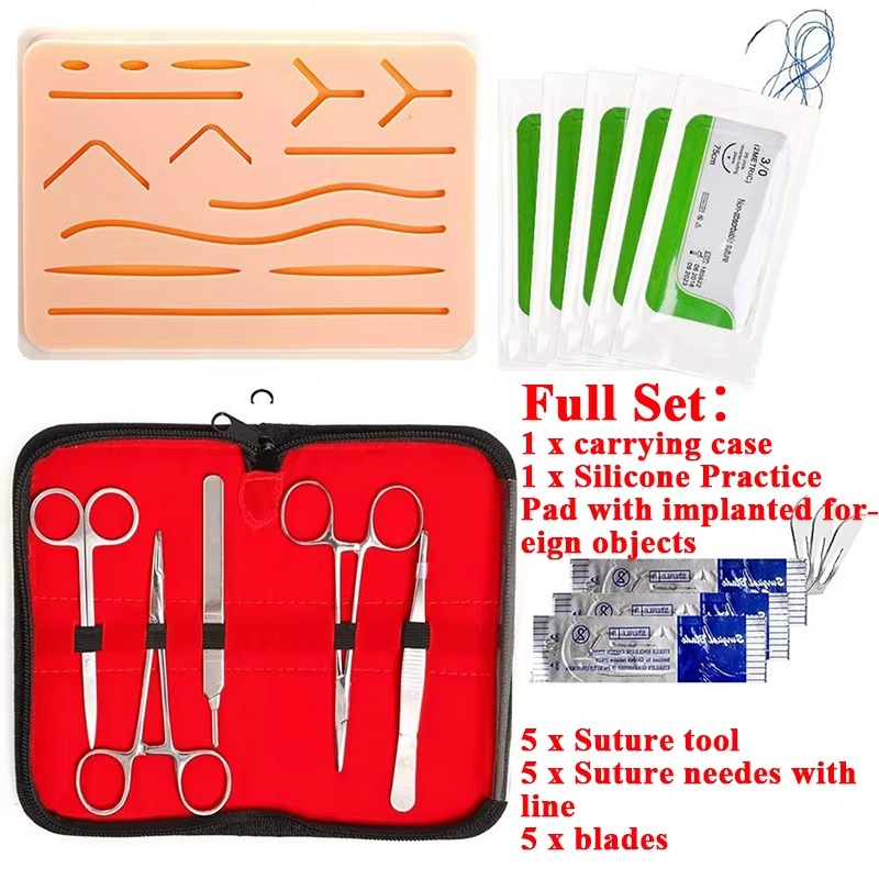 Medical Science Surgical Suture Training Kit for School Teaching Equipment Includes Silicone Pad Needle Surgical Instruments