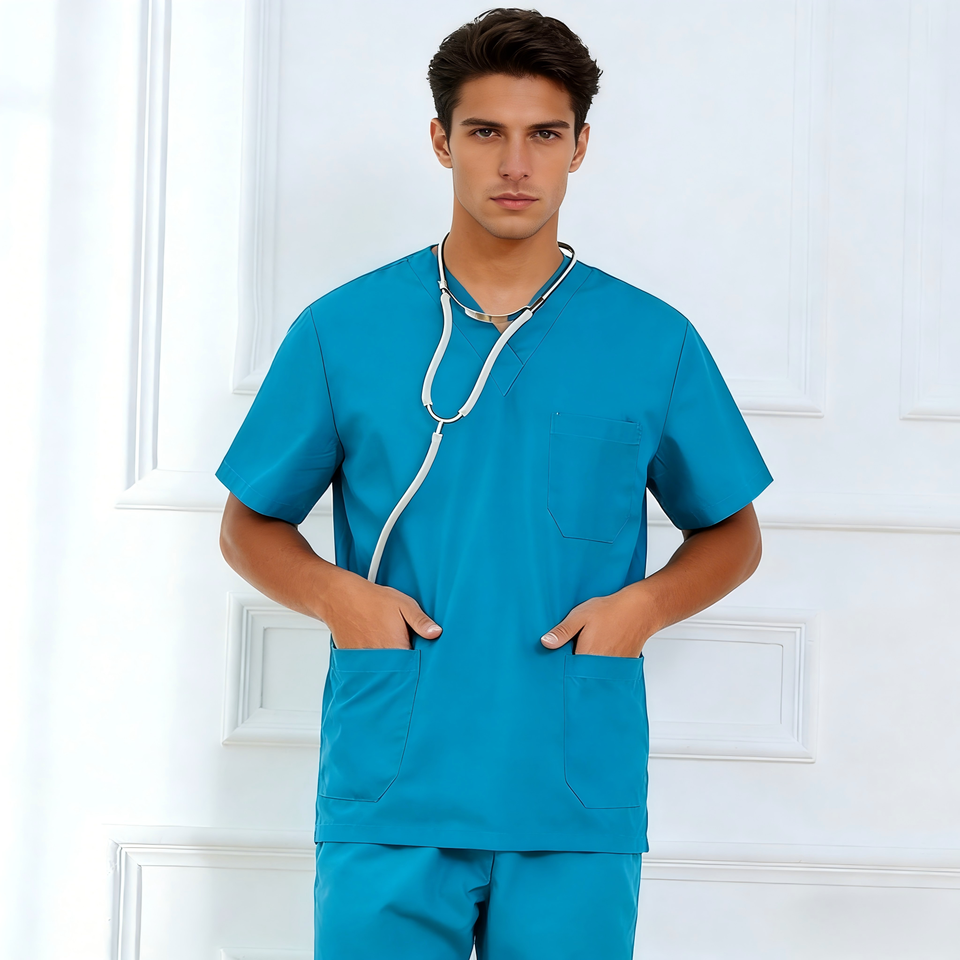 เสื้อใส่ทำงานขาตรงมีกระเป๋าผ้าฝ้ายสำหรับ100% สำหรับคลินิกโรงพยาบาล