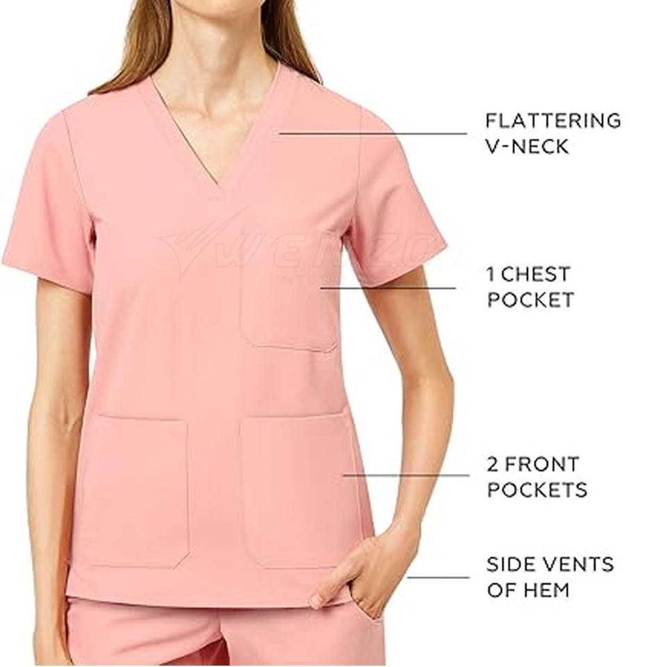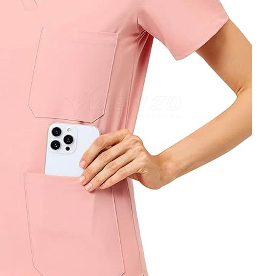 ชุดสครับแพทย์หญิง ผ้าคอตตอนผสมโพลีเอสเตอร์ ทรงสบาย ทนทาน ชุดยูนิฟอร์มพยาบาล ตรวจจับการสัมผัสเข็ม สำหรับโรงพยาบาลและคลินิก