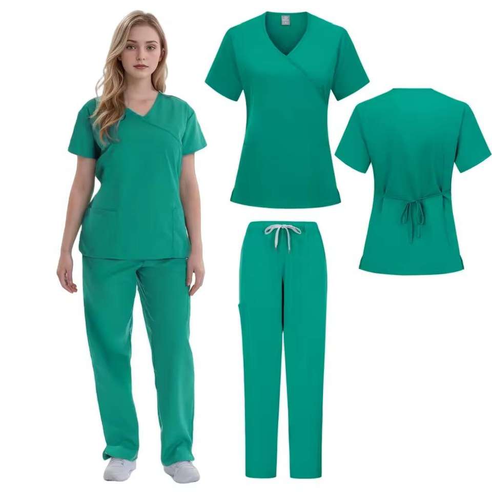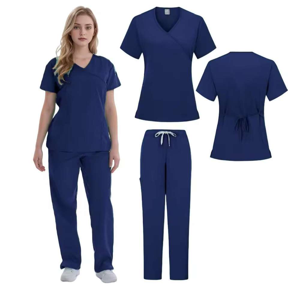 ชุดยูนิฟอร์มแพทย์แบบสวมใส่ได้ทั้งชายและหญิง ชุดสครับผ้าทอผสมคอตตอนและโพลีเอสเตอร์สำหรับโรงพยาบาล บริการ OEM