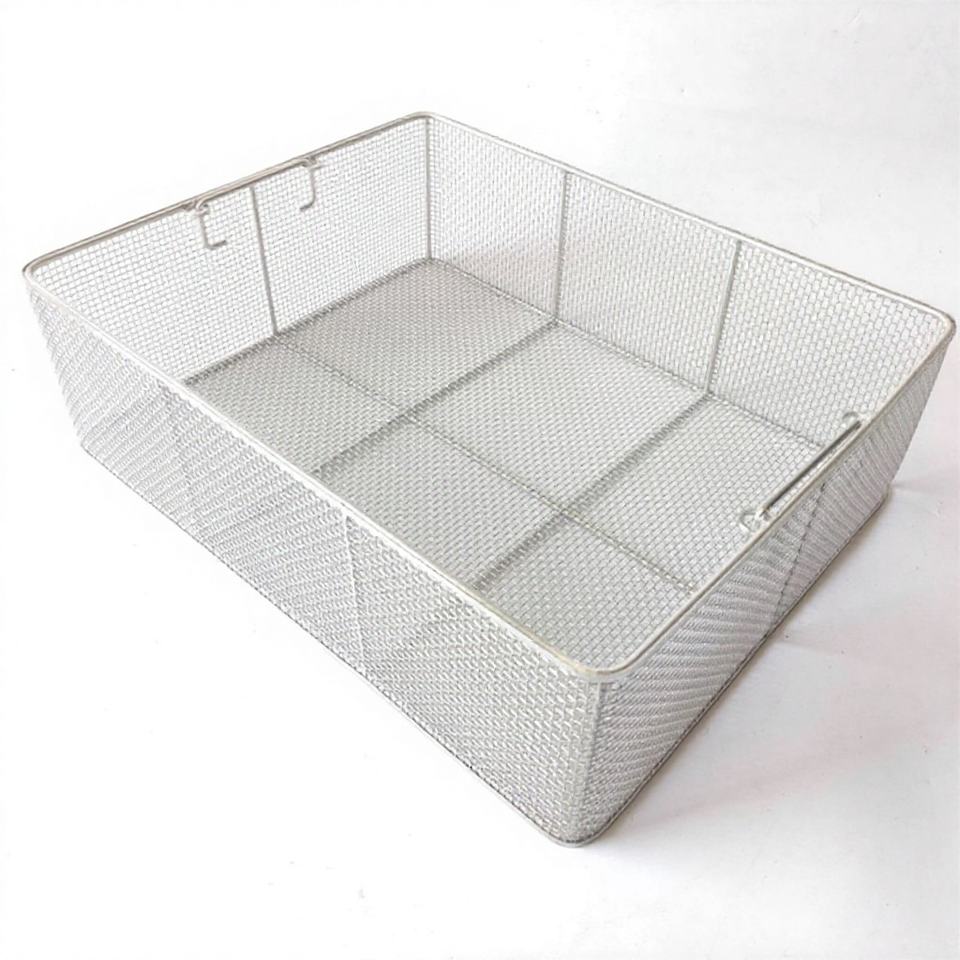 ตะกร้าฆ่าเชื้อแบบตาข่ายลวดสแตนเลสทางการแพทย์ ดีไซน์เป็นมิตรกับสิ่งแวดล้อม สำหรับใช้ในโรงงาน เก็บรักษาและขนส่งอาหาร