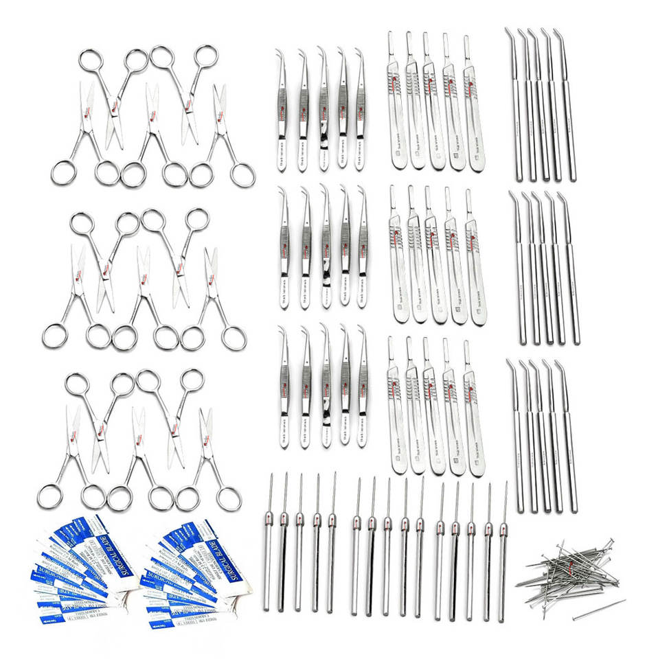 ชุดผ่าตัดสำหรับนักเรียนทางการแพทย์ชุดกรรไกรสำหรับการผ่าตัด200ชิ้นการตรวจสอบคีมการผ่าตัดมีดผ่าตัดใบมีดชีววิทยาการฝึกหัดของนักเรียน