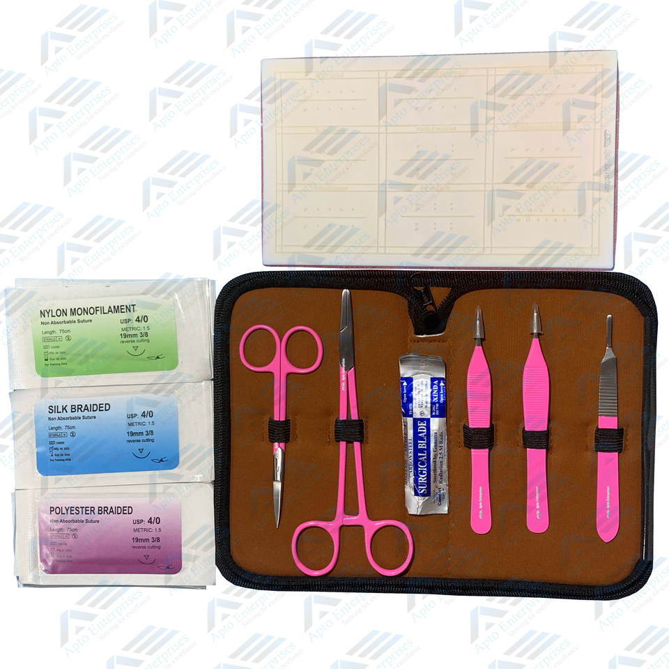 ชุดฝึกเย็บแผลสำหรับนักเรียนทางการแพทย์เครื่องมือสเตนเลสสำหรับการฝึกเย็บบนแผ่นผิวหนัง