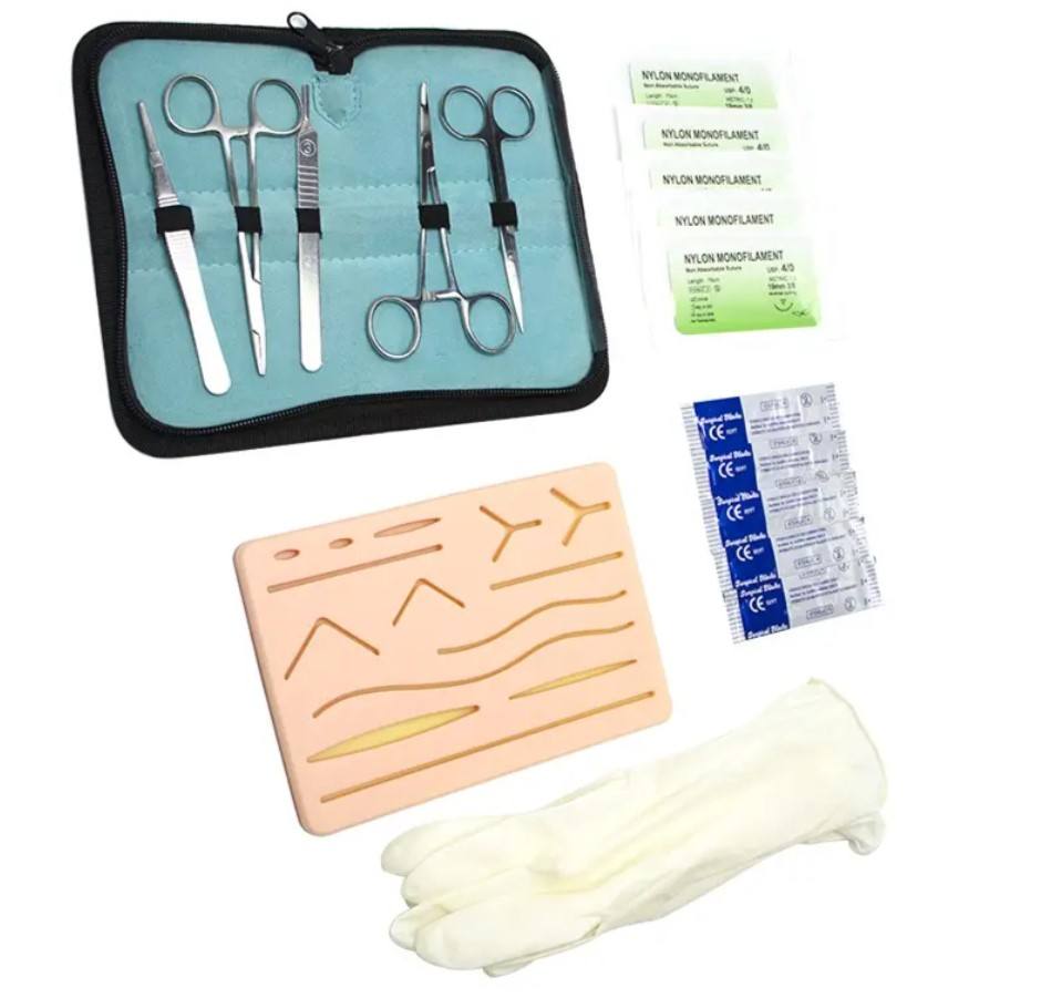 ชุดเครื่องมือผ่าตัดสำหรับนักเรียนทางการแพทย์แผ่นเย็บแผลแบบใช้มือซิลิโคนปลอดเชื้อ