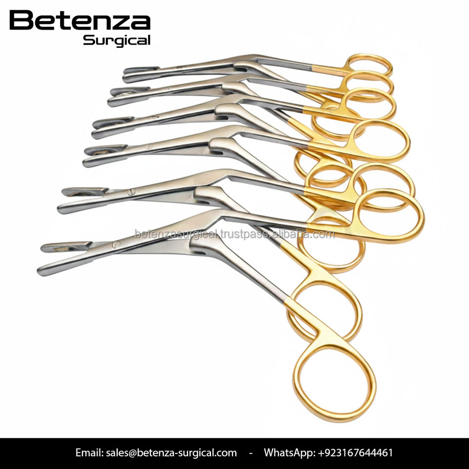 เครื่องมือผ่าตัดทางการแพทย์แบบกำหนดเอง คีมจับของ Craig Domnick ผลิตจากเหล็กกล้าไร้สนิมเยอรมัน สำหรับการผ่าตัดหู คอ จมูก ด้ามจับเคลือบทอง