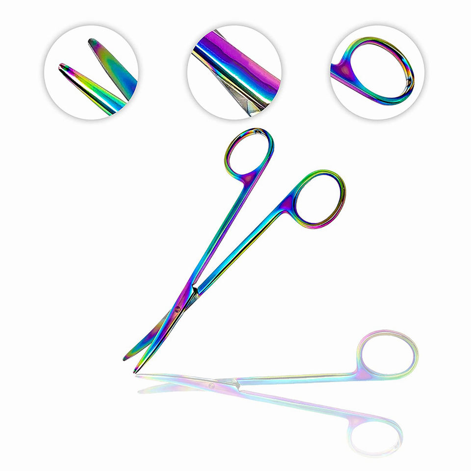 กรรไกรผ่าตัดทางการแพทย์กรรไกรโลหะโค้งงอสีไทเทเนียมเคลือบ