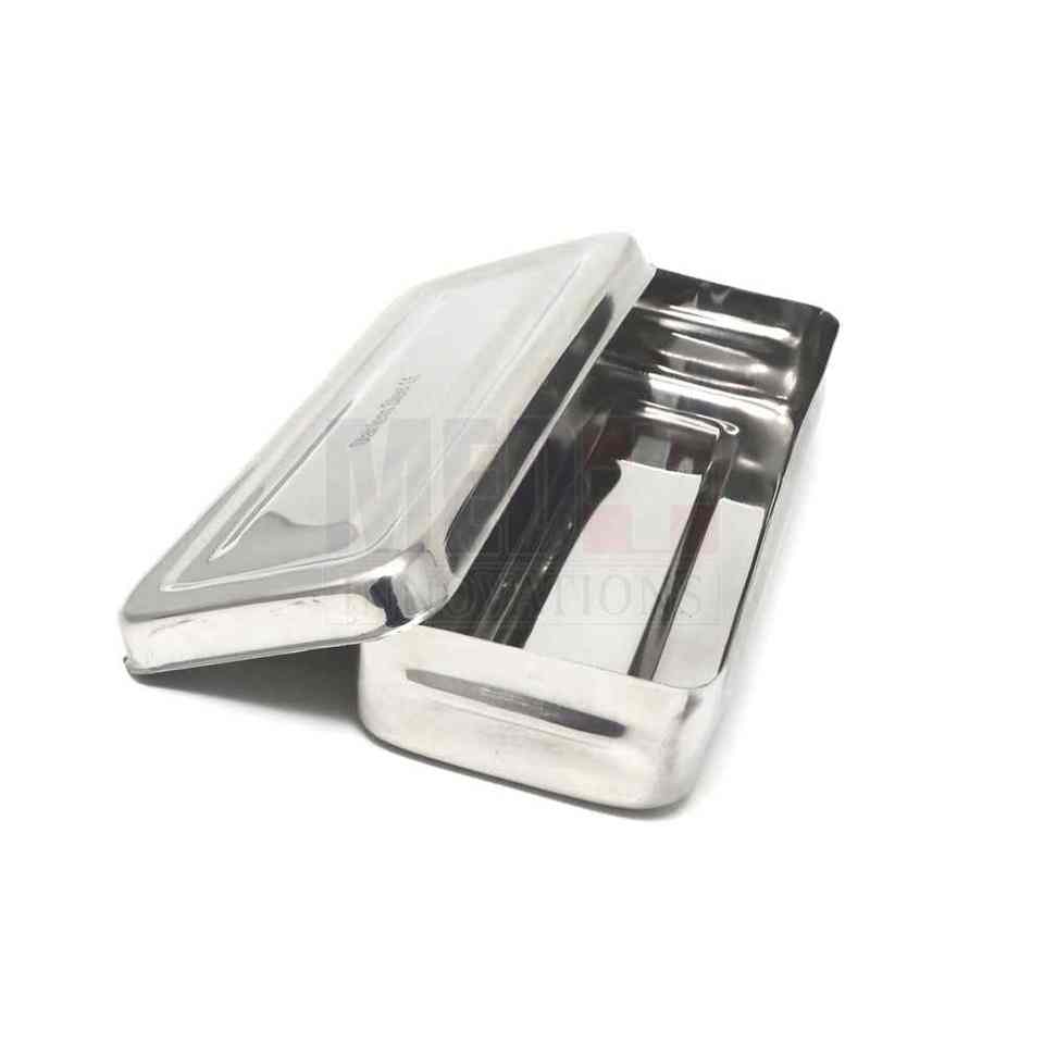 ถาดใส่เครื่องมือแพทย์ผ่าตัด สแตนเลส สำหรับเครื่องมือทันตกรรมแบบใช้มือ กล่องถาดฆ่าเชื้อพร้อมฝาปิดแบบมีรู ได้รับการรับรองมาตรฐาน CE ยี่ห้อ CARONIA SURGICAL