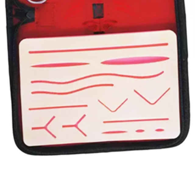 ชุดฝึกหัดเย็บแผลทางการแพทย์ ชุดเครื่องมือเย็บแผลสแตนเลส พร้อมแผ่นผิวจำลองและที่ใส่เข็ม สำหรับการฝึกอบรมทางการแพทย์