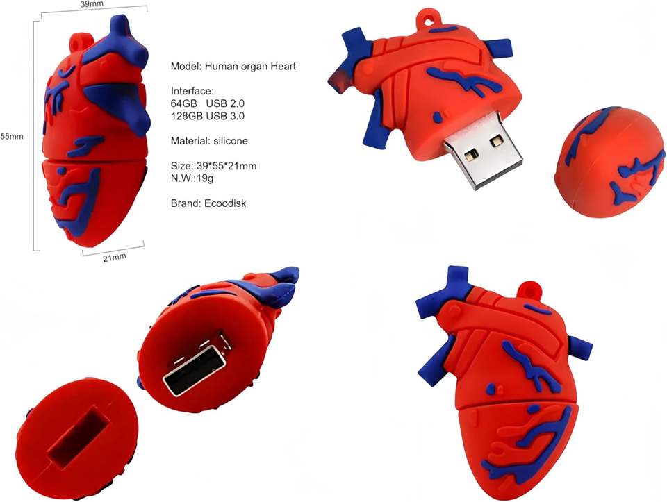 แท่งยูเอสบีทางการแพทย์64GB แฟลชไดรฟ์ USB 2.0รูปหัวใจแปลกใหม่แท่งเมมโมรี่สติ๊กทำจากซิลิโคน