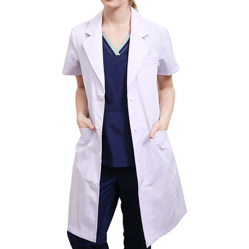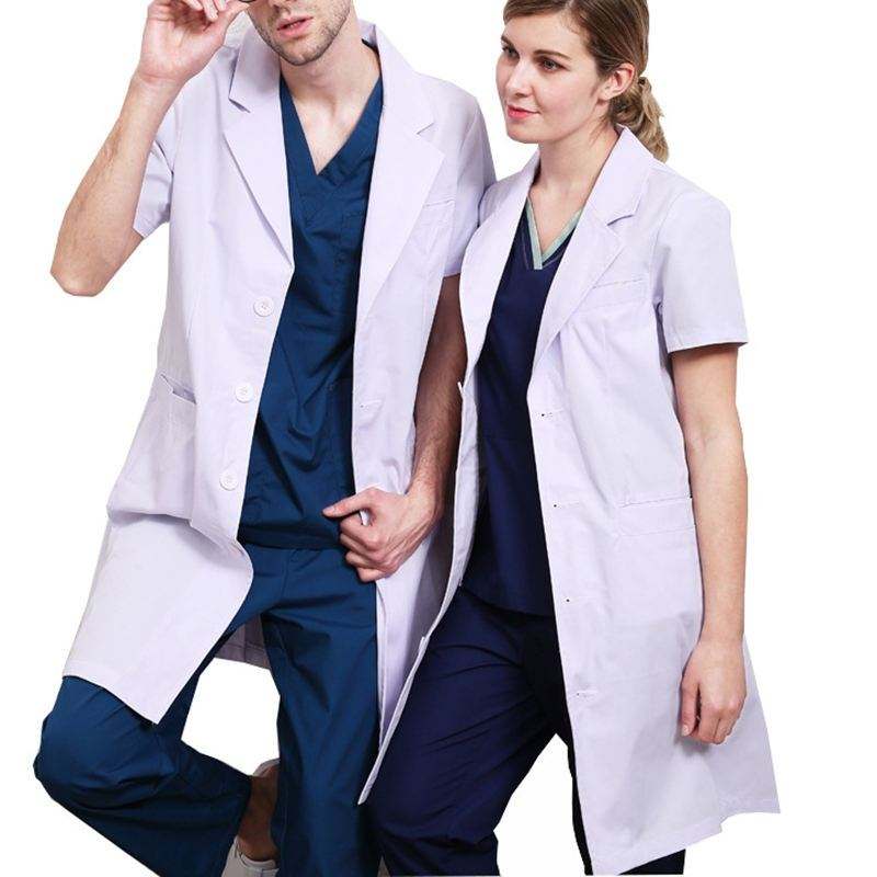 เสื้อกาวน์สีขาวสำหรับห้องแล็บเสื้อโค้ทยูนิฟอร์มโรงพยาบาล