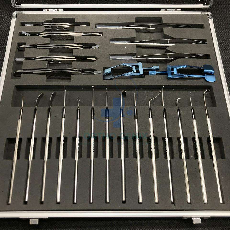 ชุดเซ็ตตาเหล่แบบแมนนวล25ชิ้นชุดผ่าตัดโรคตาไร้สารเหล็กคุณภาพสูง