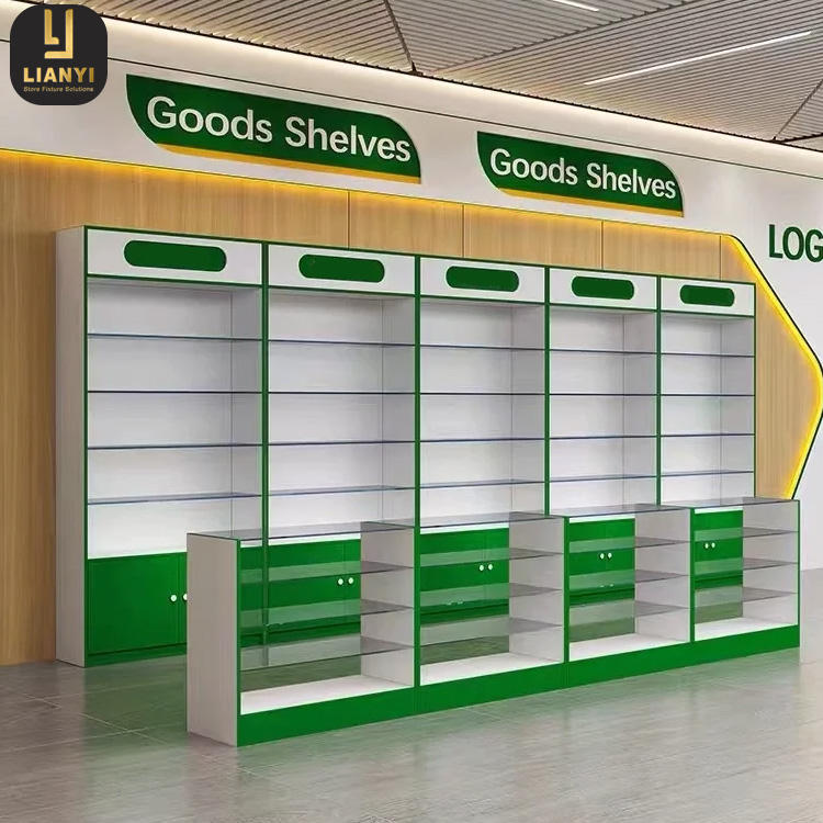 ตู้ยาตู้โชว์กระจกสำหรับร้านขายยาการออกแบบตกแต่งภายใน
