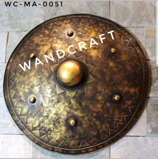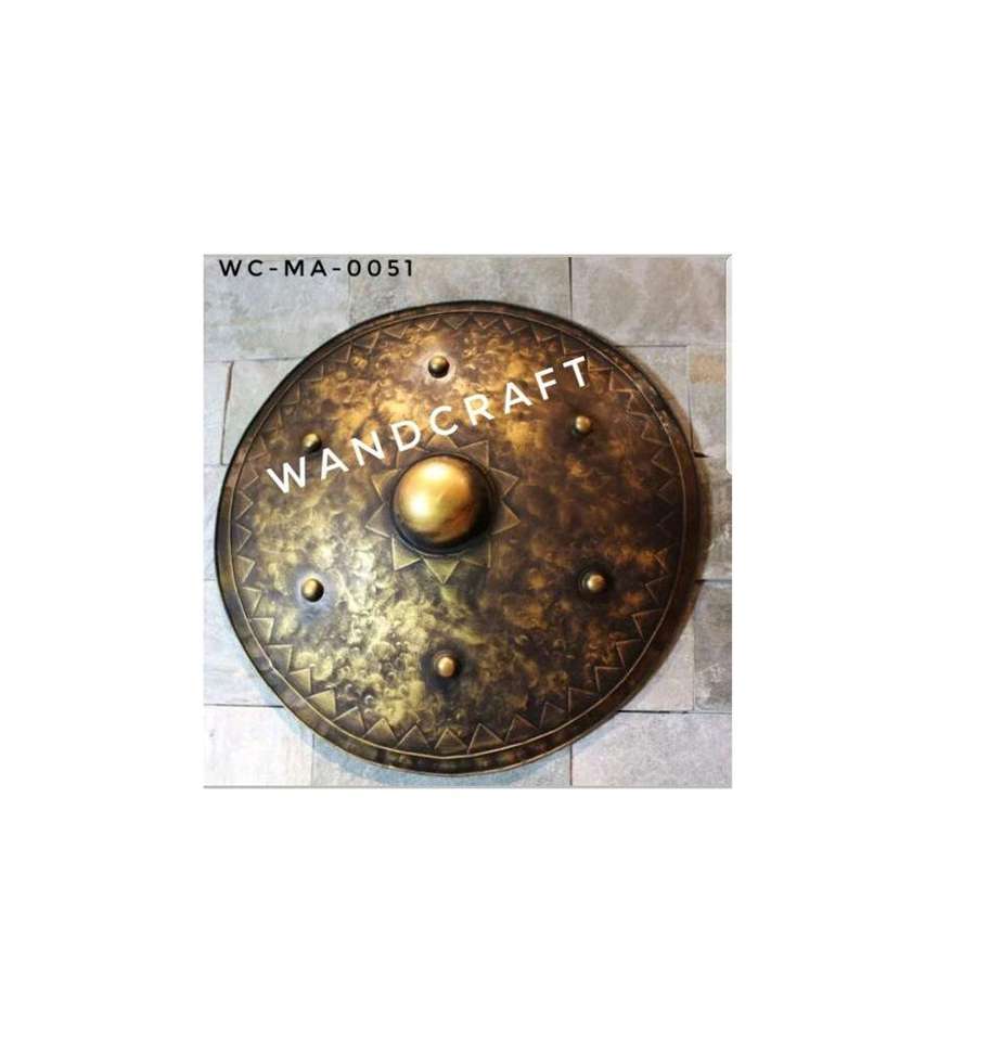 โล่โบราณยุคกลางของวัสดุโลหะทองเหลืองทรงกลมสำหรับตกแต่งห้องนั่งเล่นในราคาถูก
