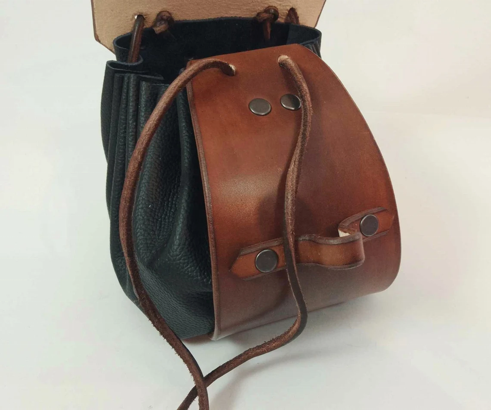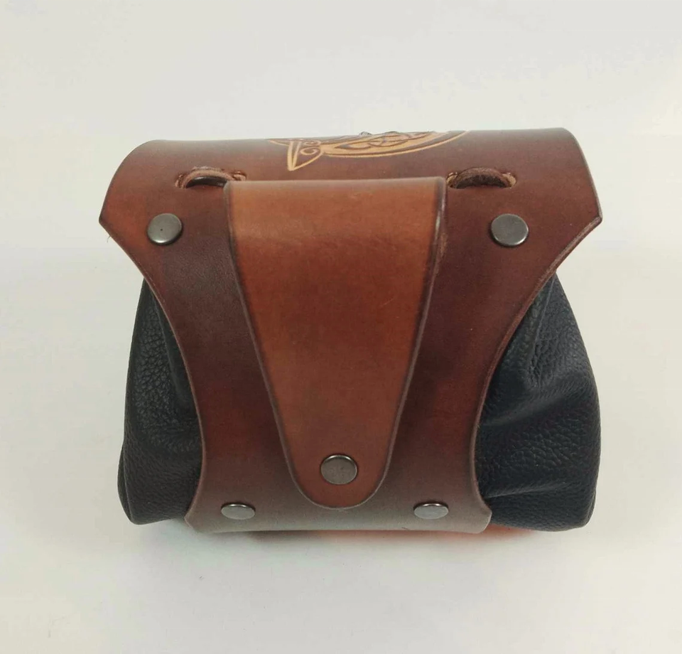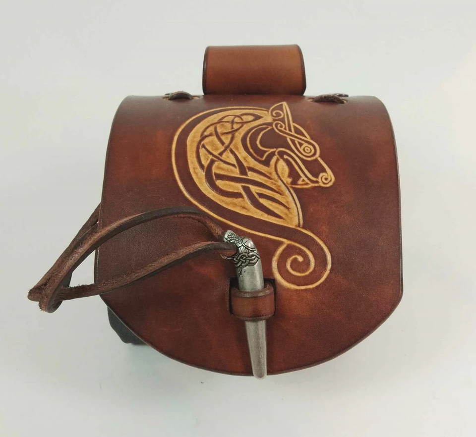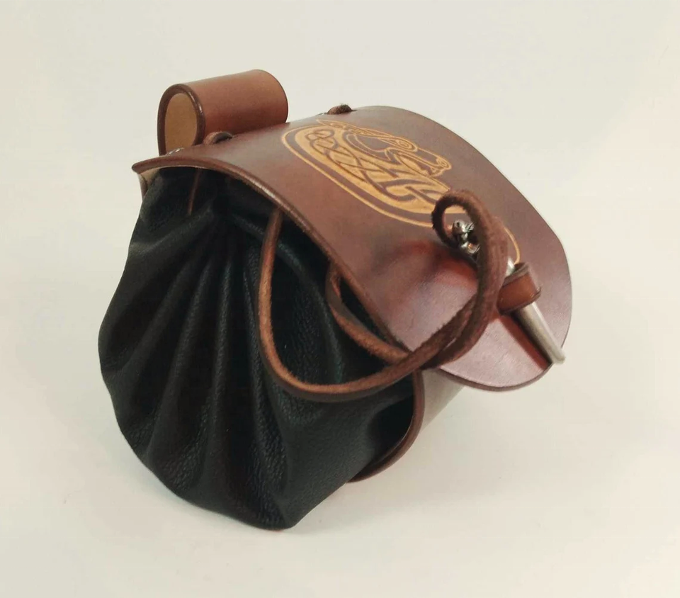 กระเป๋ายุคกลางหนัง Viking hallmarked หนังสีน้ำตาล Viking oseberg Dragon clasp แฮนด์เมดหนังว่างเปล่า unisex