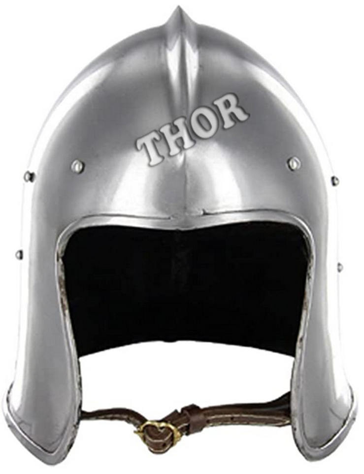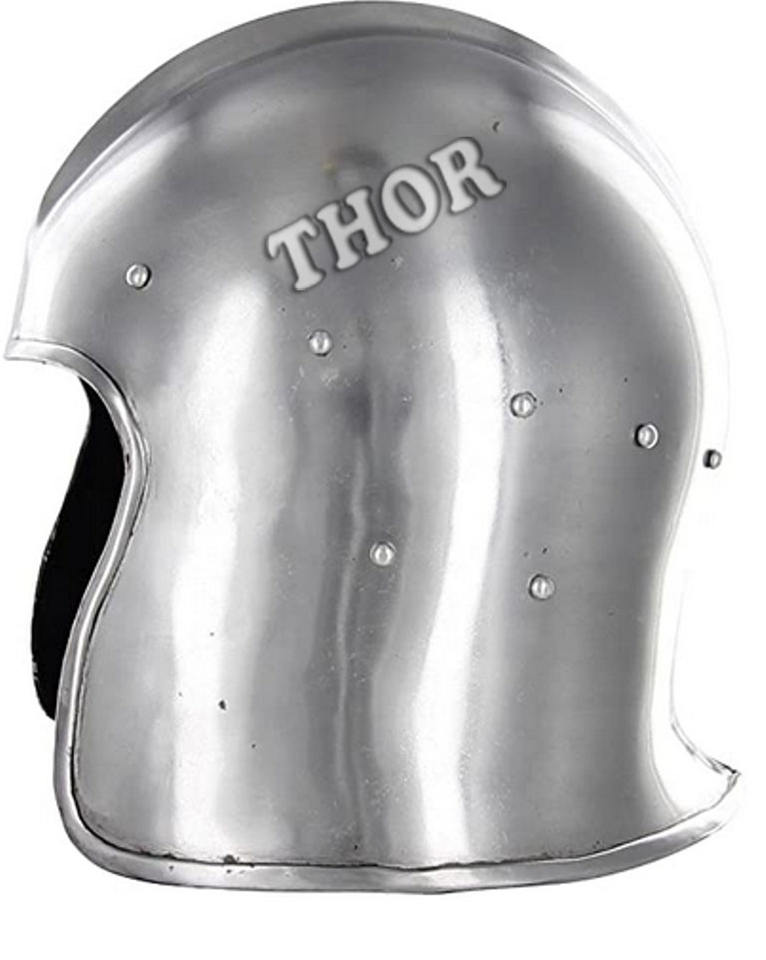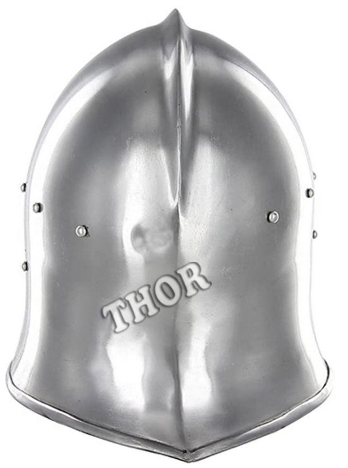 หมวกเกราะบาร์บูต้าสมัยยุคกลาง แบบเปิดหน้า น้ำหนัก 18 กรัม ทำจากเหล็กเคลือบเงาสีเงิน