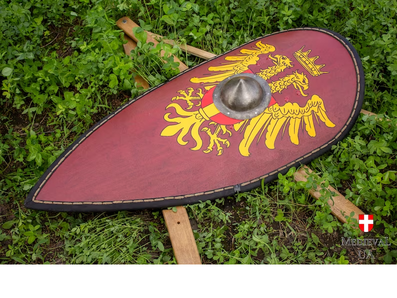 โล่ว่าวขนาดใหญ่ยุคกลางที่มีรูปแบบนกอินทรีโล่ยุคกลางโล่ไวกิ้ง reenactment SHIELD การแข่งขันโดยหัตถกรรม Calvin