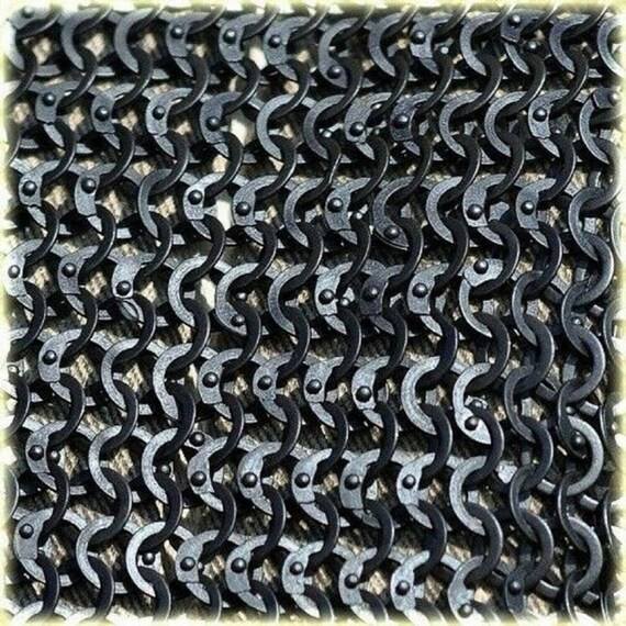 เสื้อเชนเมลยุคกลาง แขนครึ่งตัว เหล็กอ่อน 09 มม. แบบวงแหวนติดหมุดแบน สำหรับการแสดงบทบาทสมมติ งานฝีมือโลหะ ชุดคอสเพลย์