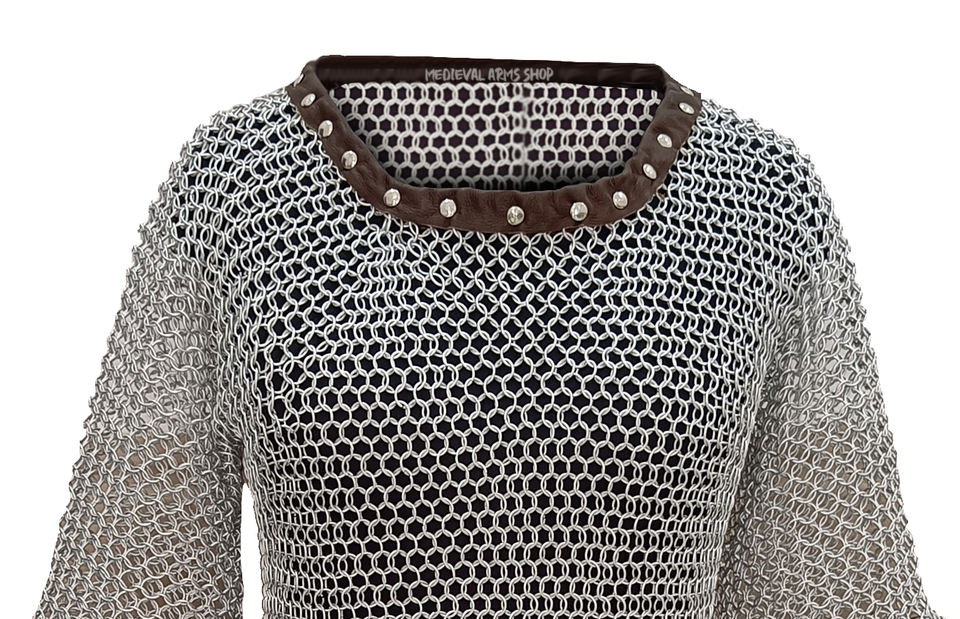 เสื้อเกราะโซ่ยุคกลางพร้อมขอบหนัง วงแหวนอะลูมิเนียม ชุดเกราะนักรบ คอสเพลย์ และการแสดงประเพณีโบราณ