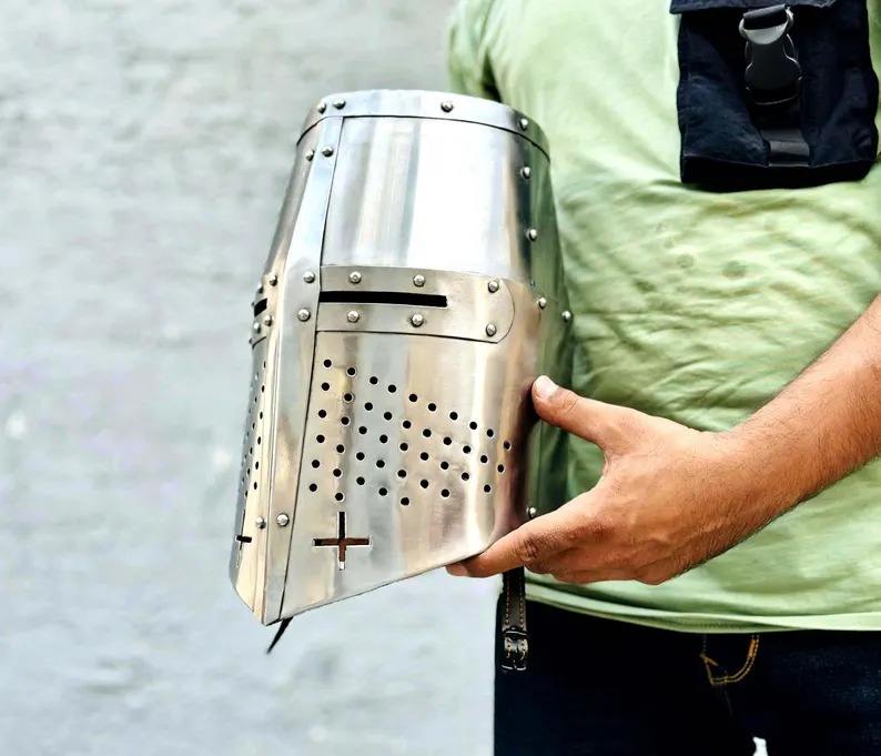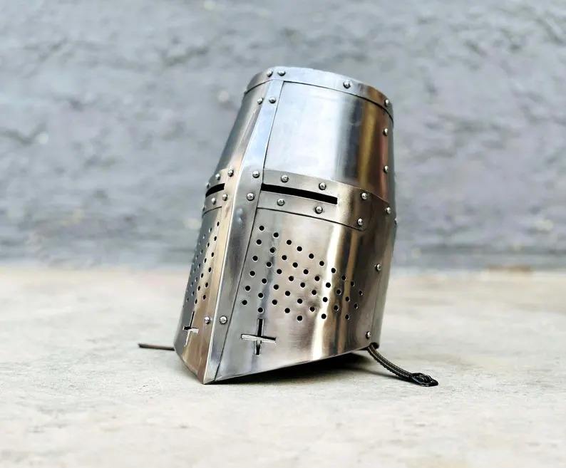 หมวกกันน็อกครูเซเดอร์ยุคกลาง | หมวกนักรบแฟนตาซี | SCA larp Knight HELMET 18 Gauge STEEL teutonic Knight