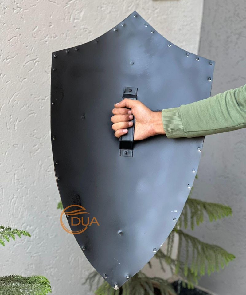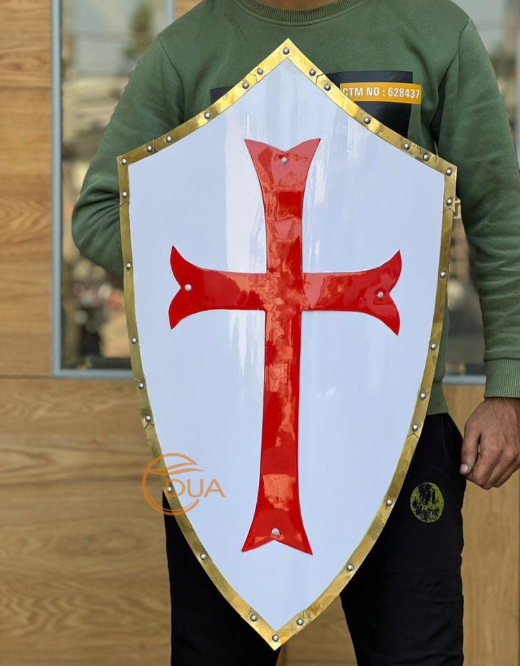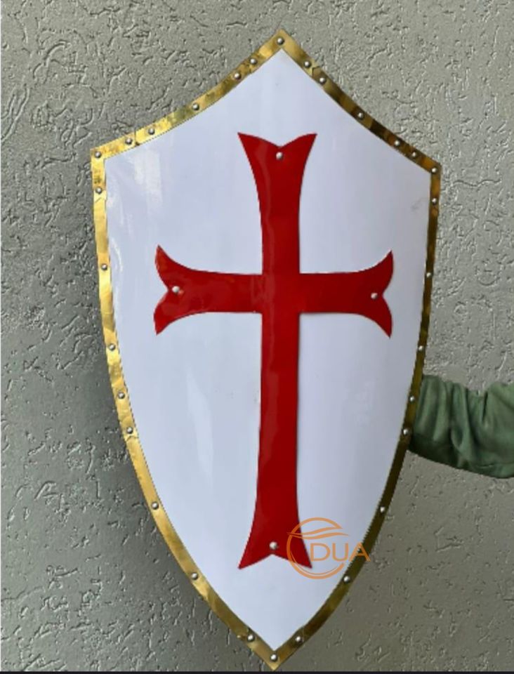 Medieval Crusader Shield White Red Cross Gold Trim Polished Iron Construction Decorative Wall Christmas Halloween Thanksgiving