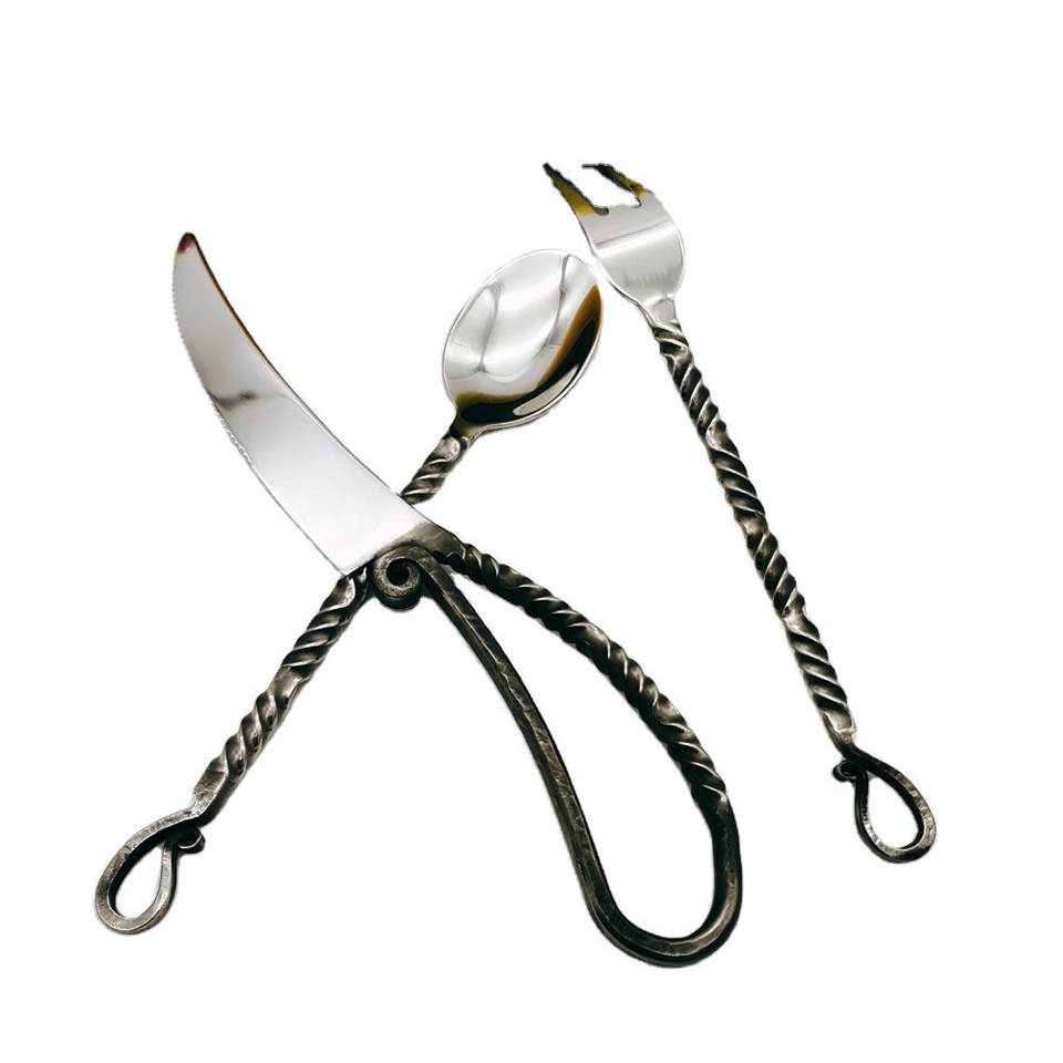 ชุดมีดแบบใช้มือปลอมสำหรับรับประทานอาหารยุคกลางชุดมีดช้อนและส้อม