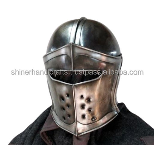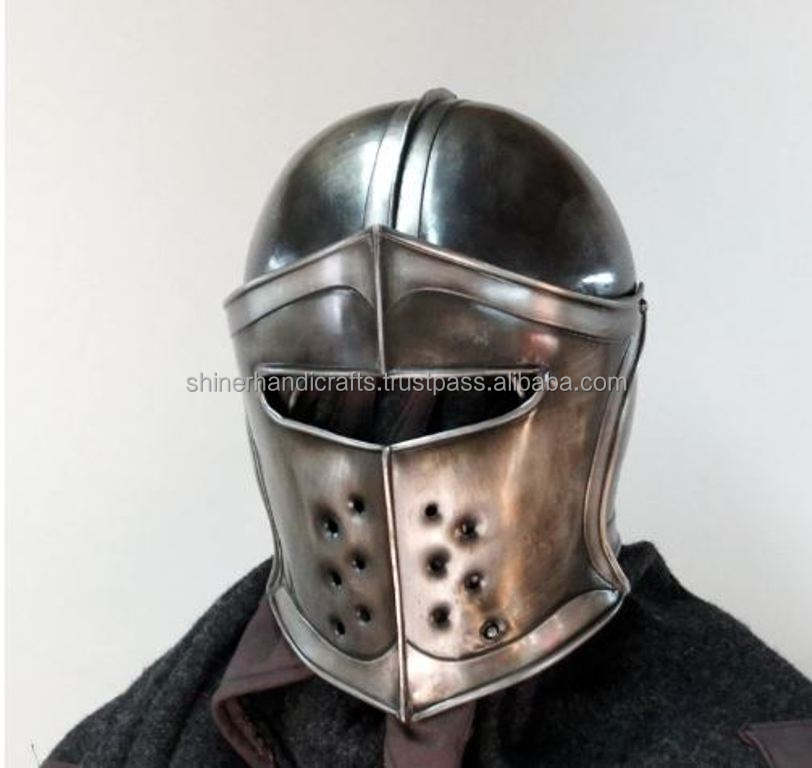 หมวกกันน็อคนักรบแคระยุคกลาง, หมวกกันน็อคแบล็ค18เกจเกราะเหล็กหมวกกันน็อกบาร์บิวทาอัศวินเหล็กนักรบต่อสู้หมวกโบราณ
