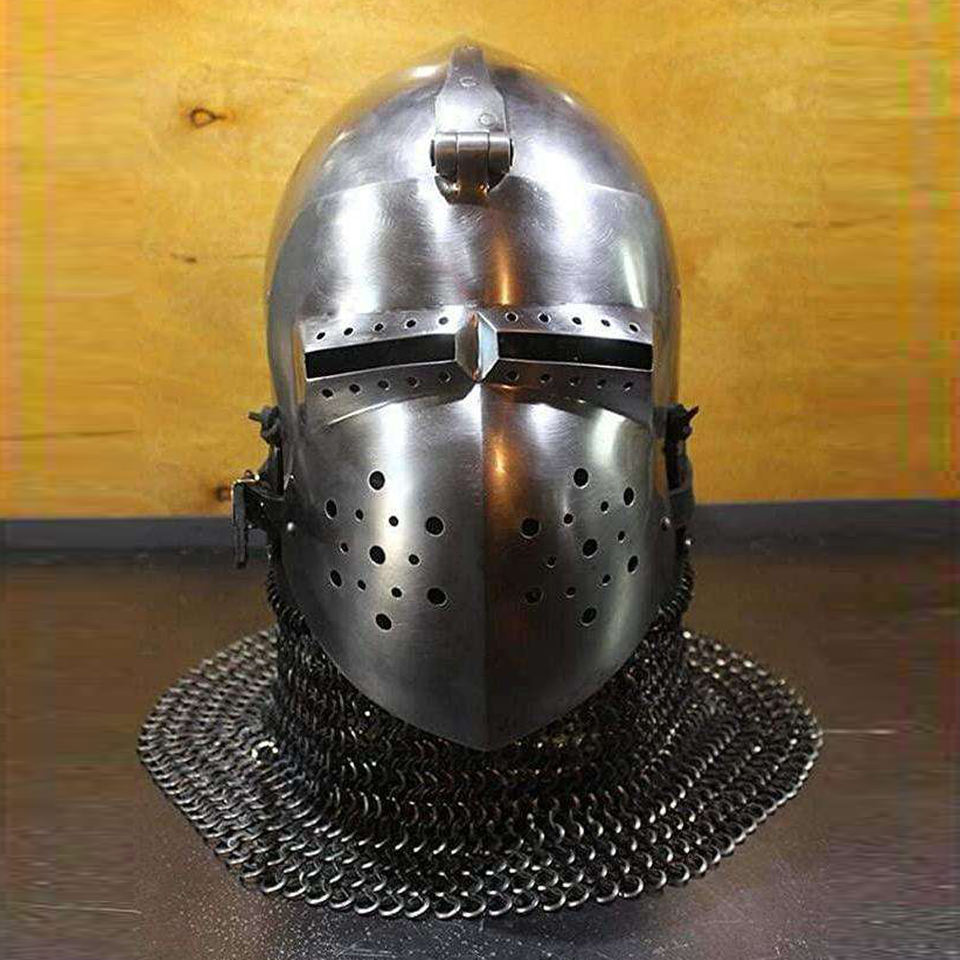 หมวกนักรบแบบตาข่ายเหล็กยุคกลาง ชุบสีโบราณอย่างหรูหรา สำหรับการต่อสู้ คอสเพลย์ และนักสะสม