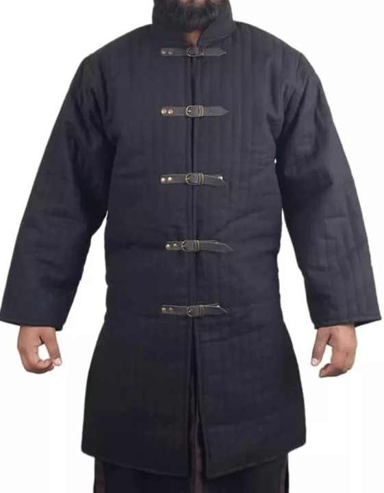 เสื้อแจ็คเก็ตแขนเต็มคอสเพลย์เสริมฟองน้ำ Gambeson ยุคกลางชุดเกราะนักรบสำหรับฤดูหนาว