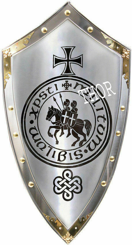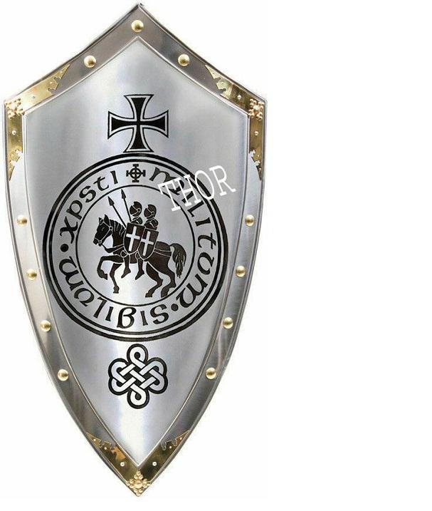 Templar Armor ชุดเกราะอัศวินยุคกลาง,เกราะโลหะ18เกจเหล็กสีเงินทำด้วยมือขนาด32นิ้ว