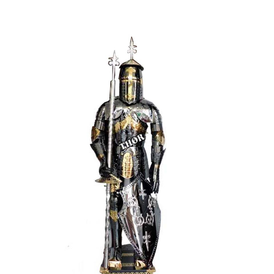ชุดเกราะนักรบยุคกลางแบบเต็มตัว ทำจากสแตนเลส ดีไซน์ใหม่ คอวี ชุดเกราะเทมพลาร์สำหรับการต่อสู้ ผู้ใหญ่ แบบจีบ ไซส์ใหญ่ ระบายอากาศได้ดี
