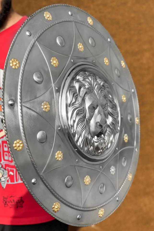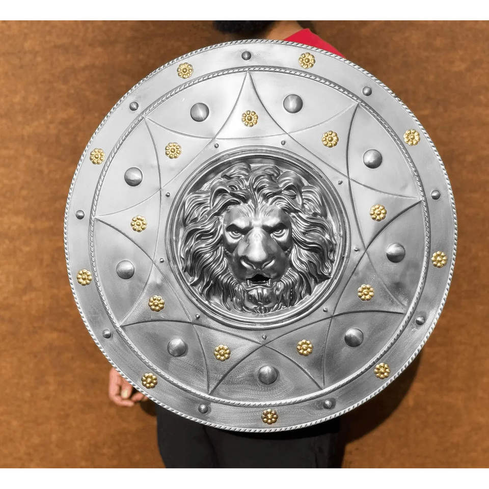 Medieval Lion Face Mild Steel Shield for Cosplay and Battle Knight Armor for Halloween Decor Reenactment Gift Collection