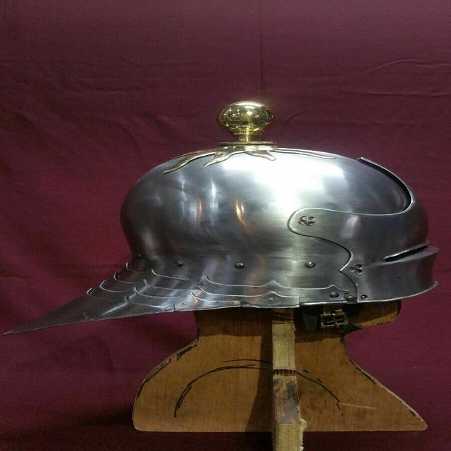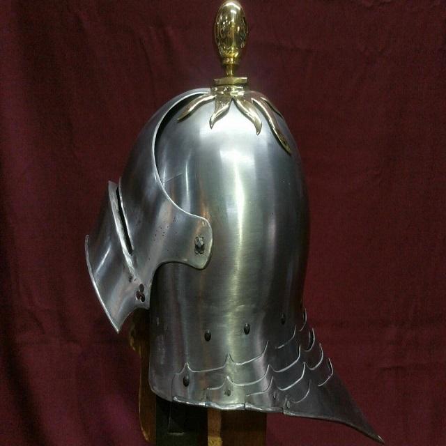 หมวกนักรบเงินยุคกลางแบบเยอรมัน หมวกนักรบยุโรปแบบปิดหน้า ชุดคอสเพลย์นักรบยุคกลาง หมวกเกราะ