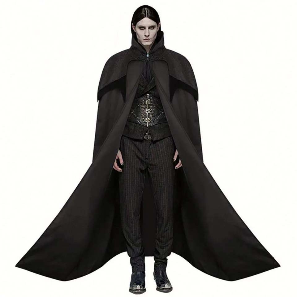 ชุดสูทแนวเรโทรคอสเพลย์สำหรับผู้ชายชุดย้อนยุคเสื้อคลุมยาวพร้อมฮู้ดสำหรับเทศกาลฮาโลวีน