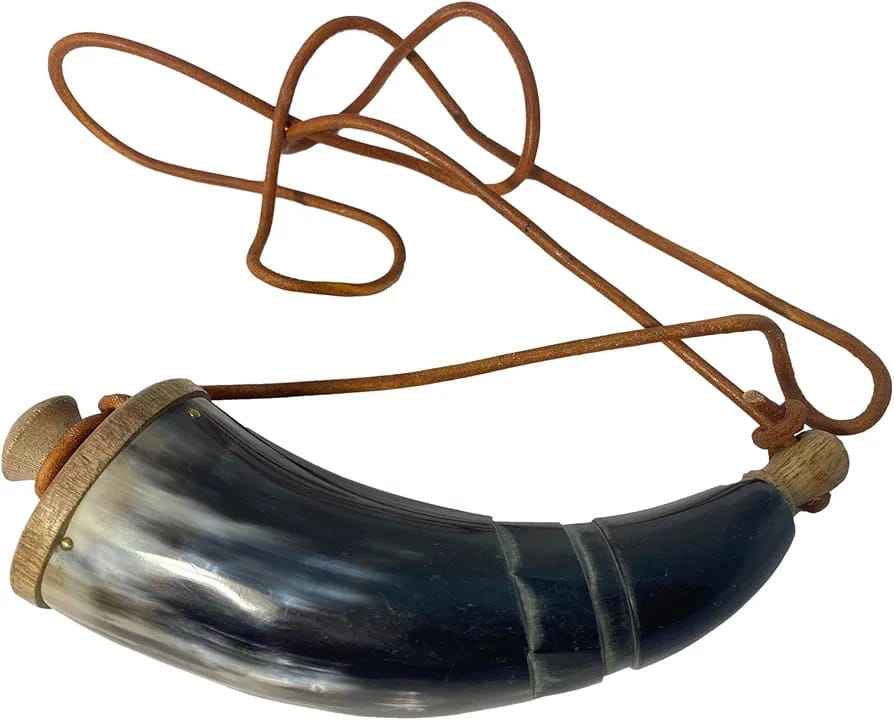 แตรเป่า100% พร้อมแตรแกะสลักและสายหนังวัวดีไซน์สัตว์สไตล์ยุคกลาง