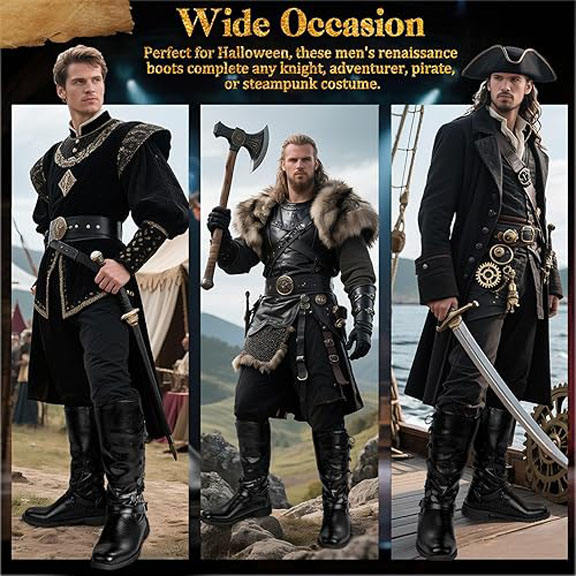 รองเท้าบูทโจรสลัดยุคกลางสำหรับผู้ชายรองเท้าบูทคอสเพลย์แนวเรเนอซองส์ฮาโลวีนหนังเทียมผูกเชือกรองเท้าคอสเพลย์แบบกอธิคแบบมีกระดุม