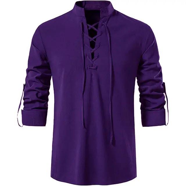 เสื้อคอสตูมแนวโจรสลัดสำหรับผู้ชายเสื้อเชิ้ตชาวคอตตอนแขนยาวปักลูกไม้ยุคกลาง