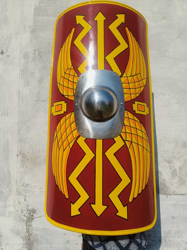 โล่โลหะการต่อสู้ของโรมันลีเจียนแลร์โบราณที่ใช้ในสงครามสีแดงและสีเหลืองด้วยมือ maricles oem/odm