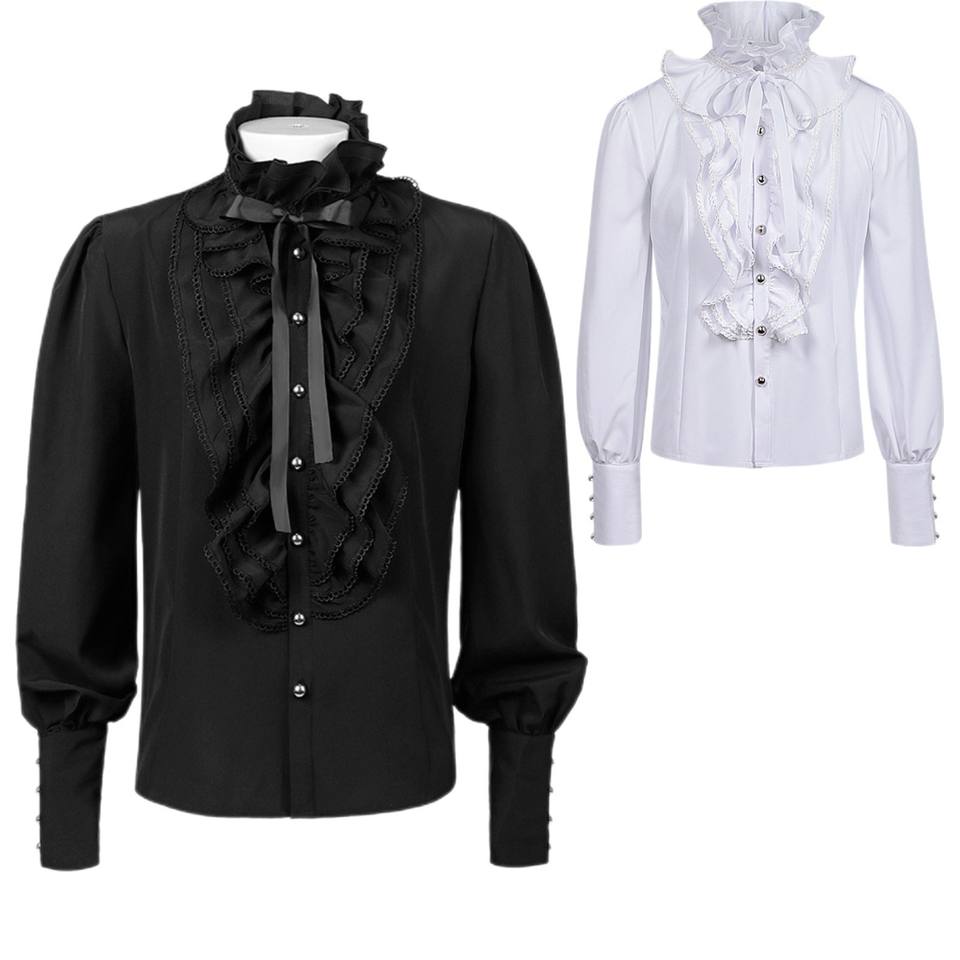 Medieval Shirts Halloween Costume Clothing Chemise Male Mens Pirate Shirt Vampire Renaissance Victorian Steampunk Gothic Ruffle