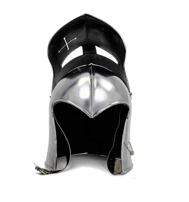 หมวกอัศวินชุบเงินยุคกลางสำหรับตกแต่งงานแฮนด์เมดอเนกประสงค์สำหรับการแสดงบนเวทีในเรเนสซองส์
